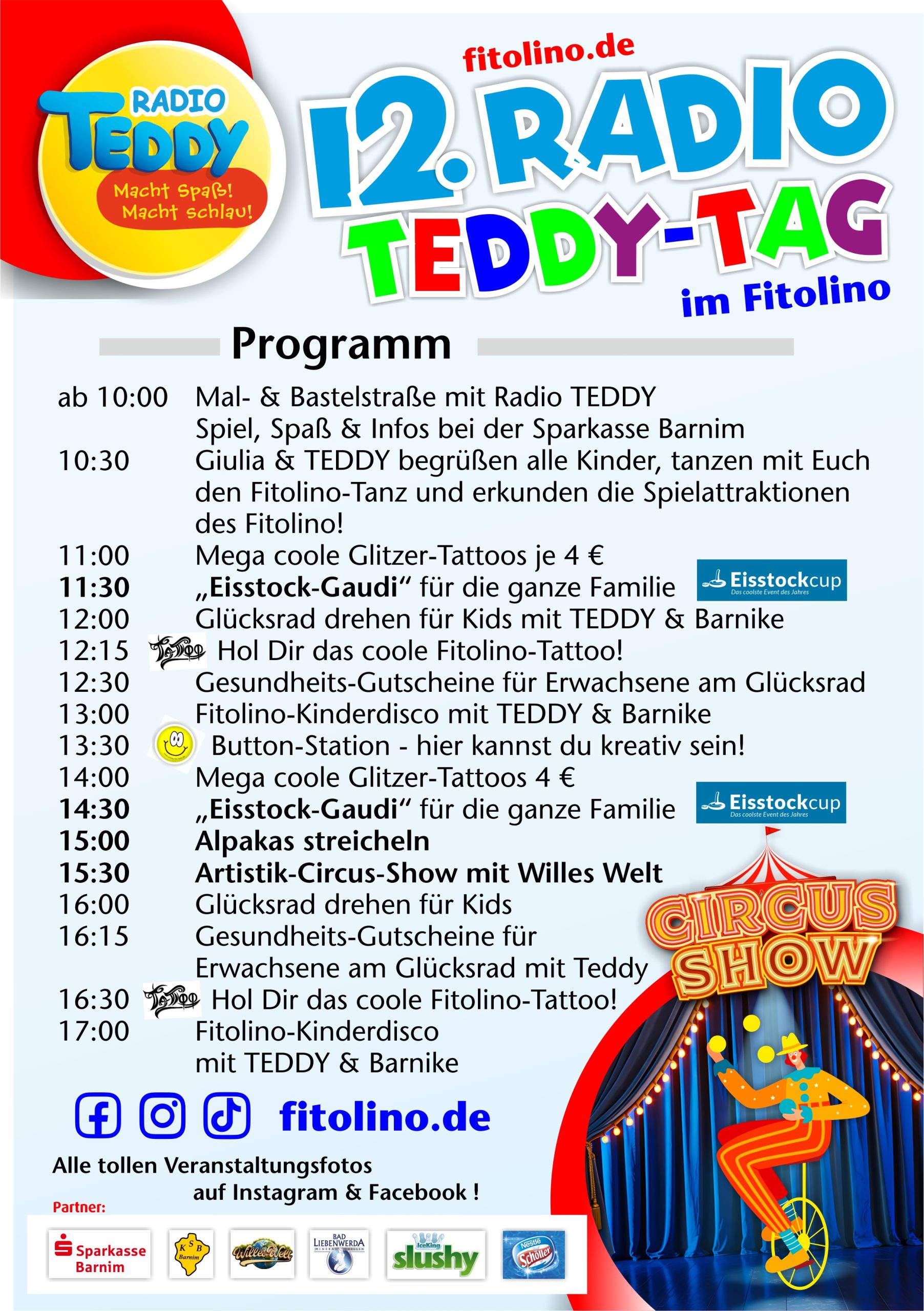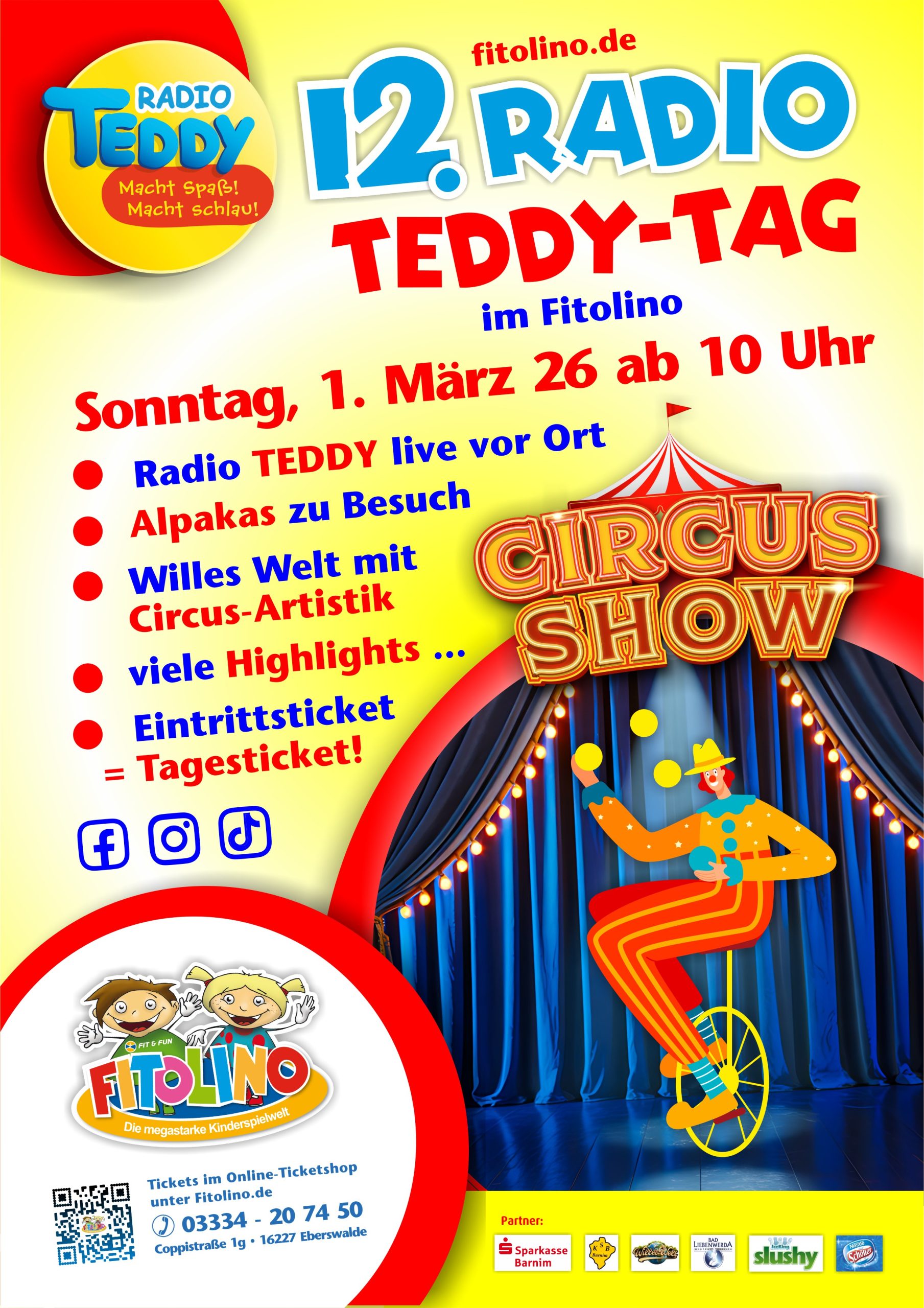 Erlebt am Sonntag den 1. März ab 10 Uhr im Fitolino den 12. Radio TEDDY-Tag in der megastarken Kinderspielwelt Fitolino in Eberswalde.