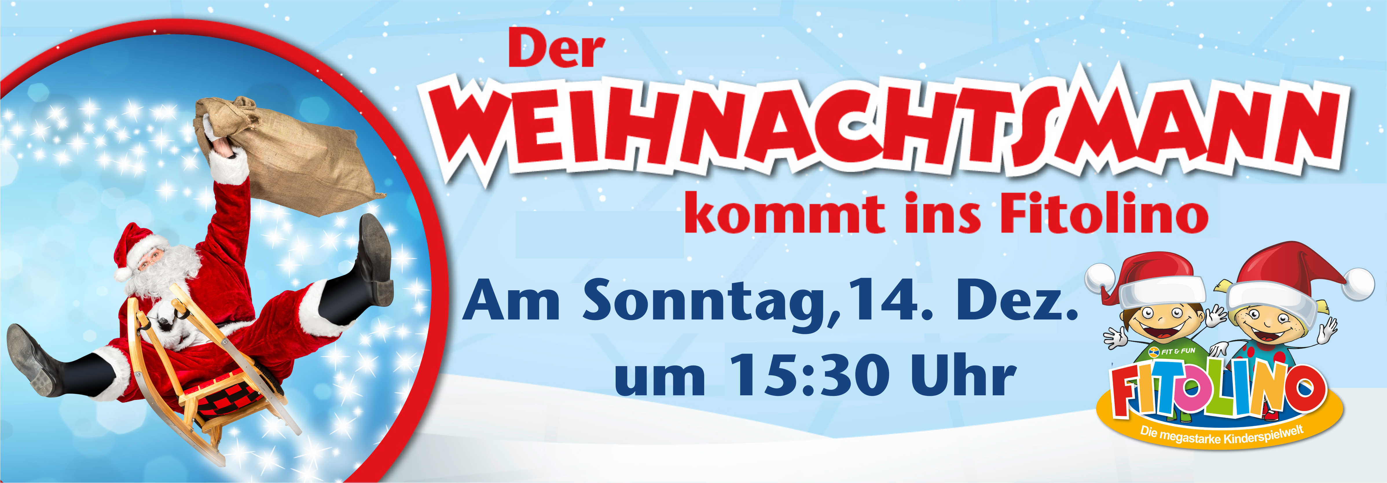 Am Sonntag den 14. Dezember besucht um 15:30 Uhr der Weihnachtmann mit einem großen Sack voller Geschenke ins Fitolino!